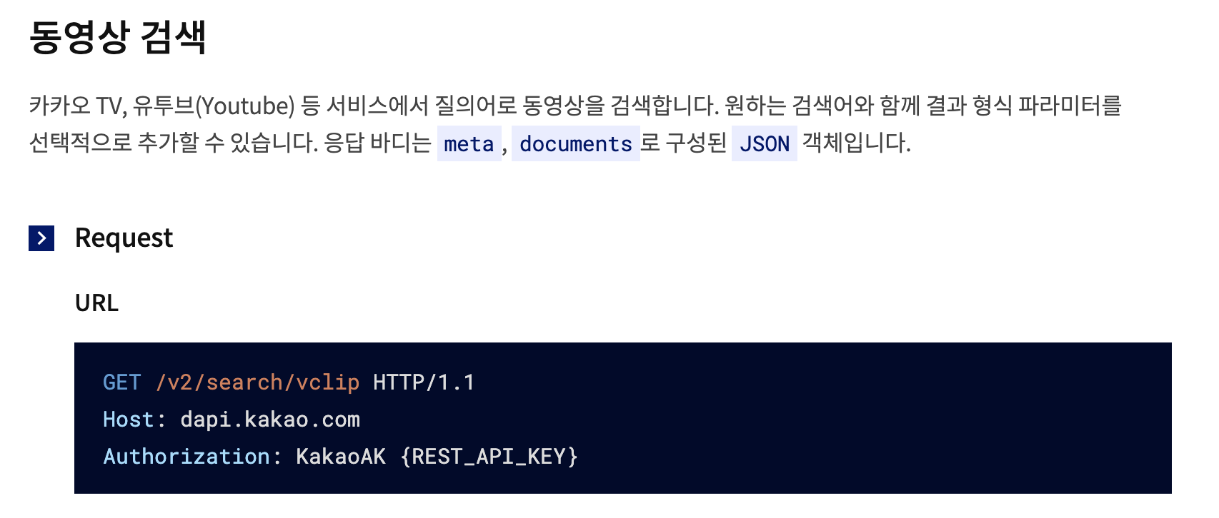 var url = 'https://dapi.kakao.com/v2/search/vclip?target=title&query=오징어게임';